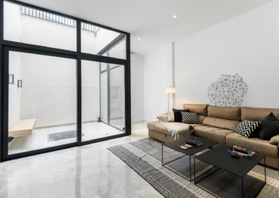 El solar era alargado y se intento utilizar recursos para que la vivienda pareciera más amplia en todo momento.